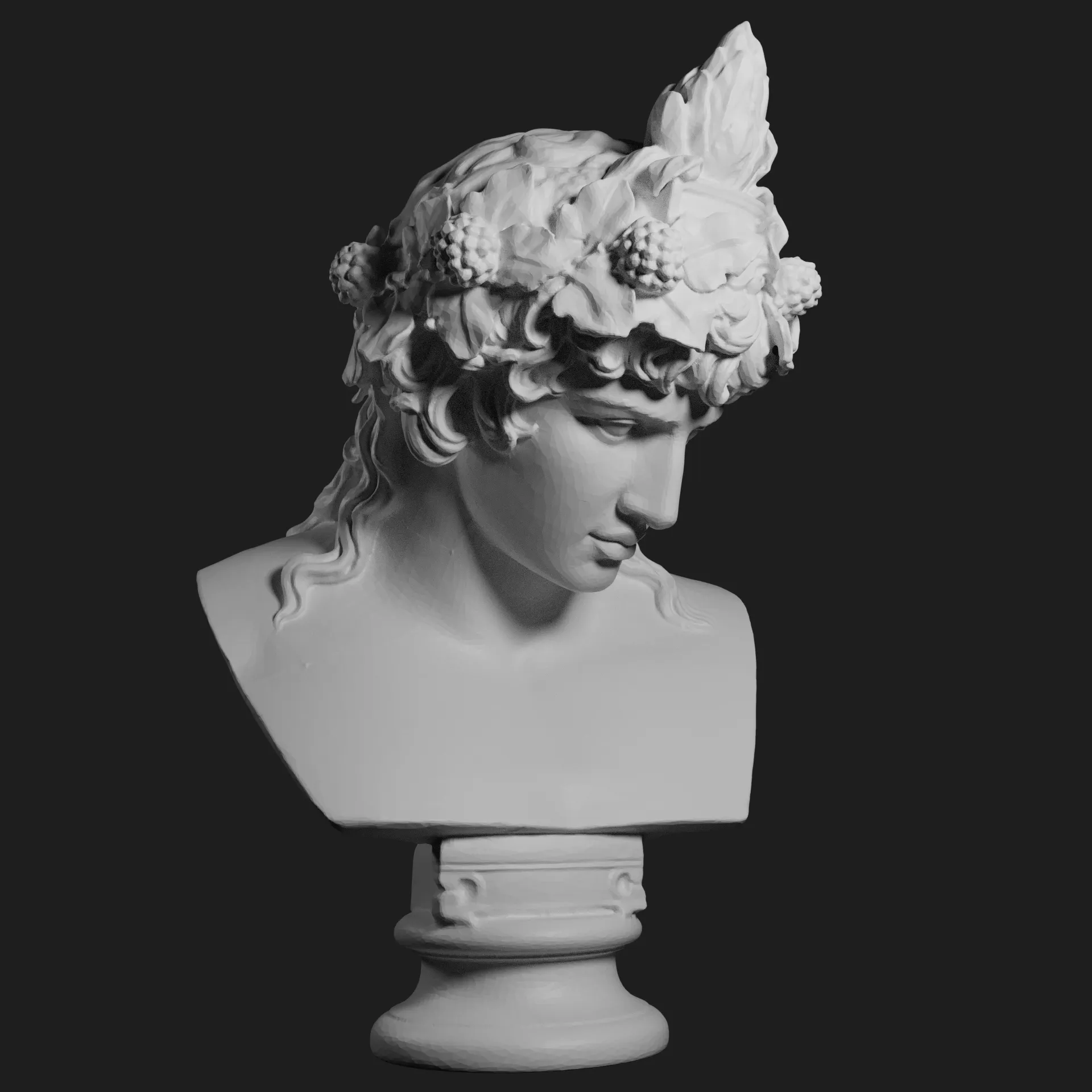 3D scan of a 2nd-century Roman marble statue portraying Antinous, deified as a hybrid of Dionysus and Osiris